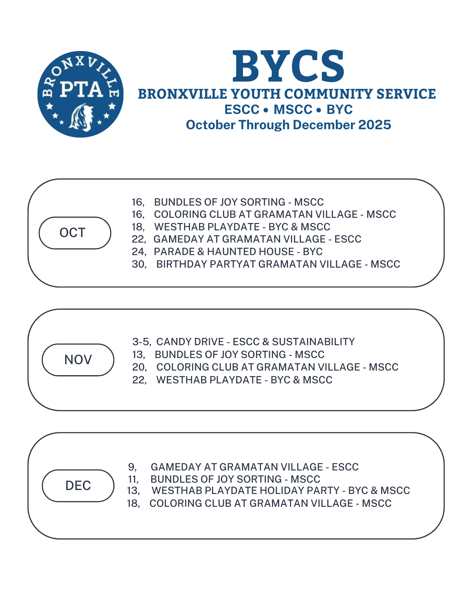 Our mission is to support Character and Community Committee programs across all three schools, as they uphold all aspects of the Bronxville Promise through a variety of service initiatives benefiting our greater community.